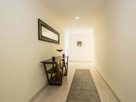 The apartments range from about 2,500 to 4,200 sq ft, with many units providing panoramic views of the golf course. Interiors feature VRV air-conditioning systems, imported Italian marble flooring combined with wooden flooring in bedrooms, and soundproof double-glazed windows. Clubhouse interiors are designed by Richmond International, underscoring the project’s high-end positioning.